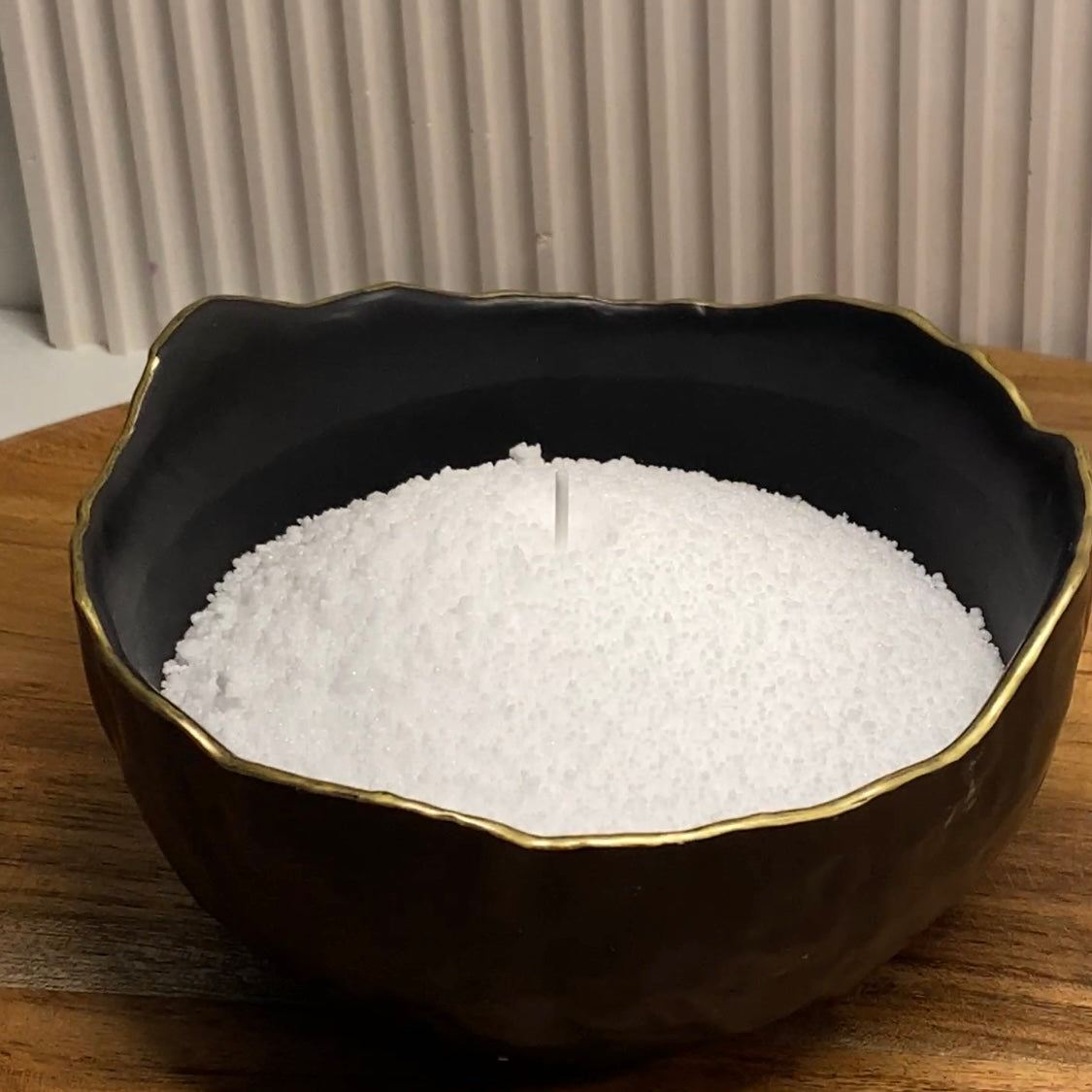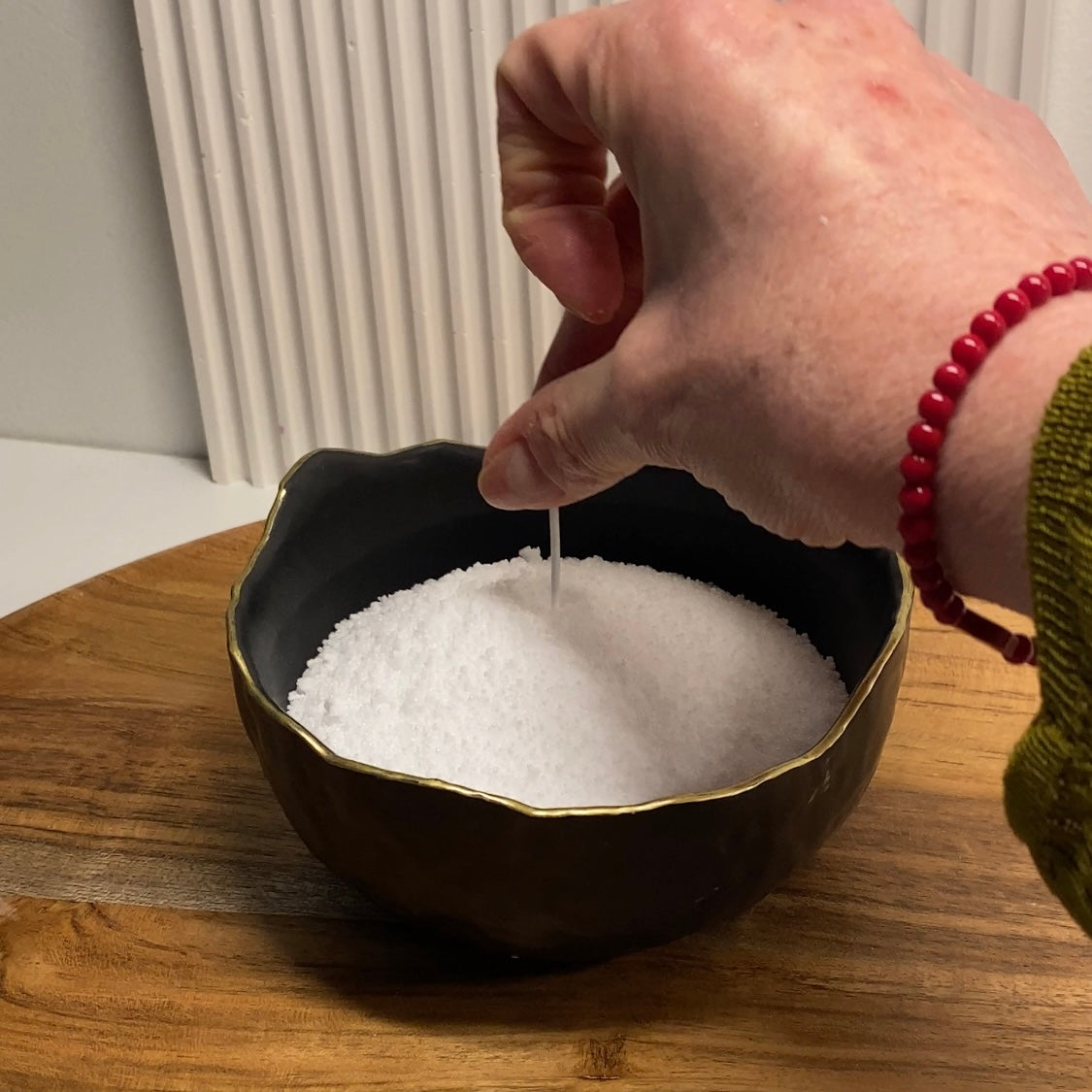 Placez une ou plusieurs mèches fournies, dans votre récipient, en les espaçant d'au moins 6 cm. Veillez à ce que la mèche soit bien droite, en la faisant dépasser de 1 cm. Votre bougie perlée diffusera une lueur douce et chaleureuse.